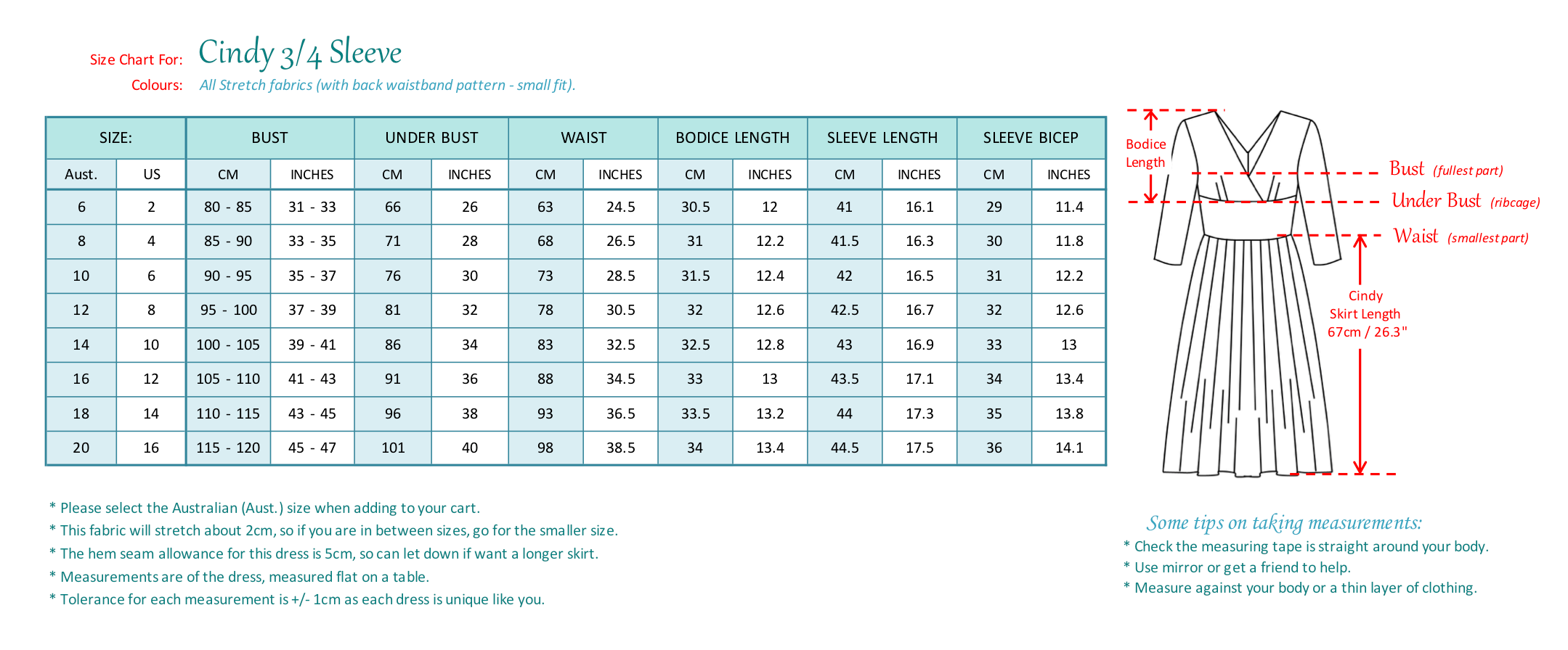 This Cindy dress has a 3/4 length sleeve which like our short sleeve design, is perfect for cooler nights and in between seasons. The neckline crosses over into a fitted front waistband, with a wide tuck skirt and has side seam pockets.