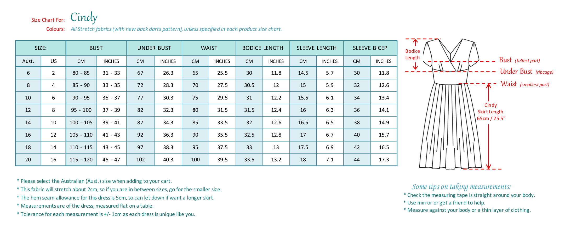 Please note, the print placement will vary on the bodice and waistband on each dress.