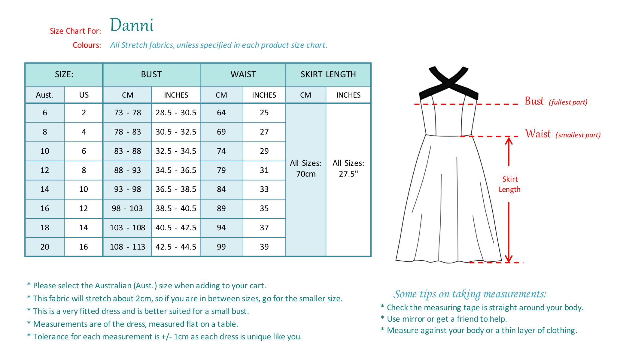 Dare to be different wearing the Danni dress with the cross front design detail. The bodice fits as a strapless style on top of a circle skirt with side seam pockets.